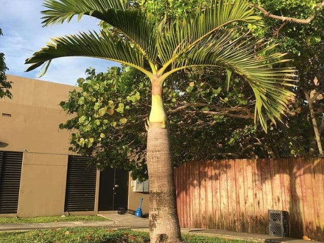 Esta palma de crecimiento lento proporciona un toque tropical a cualquier entorno con su tronco gris y sus hermosas frondas verdes brillantes. Con el tiempo, el tronco forma una barriga en el medio.